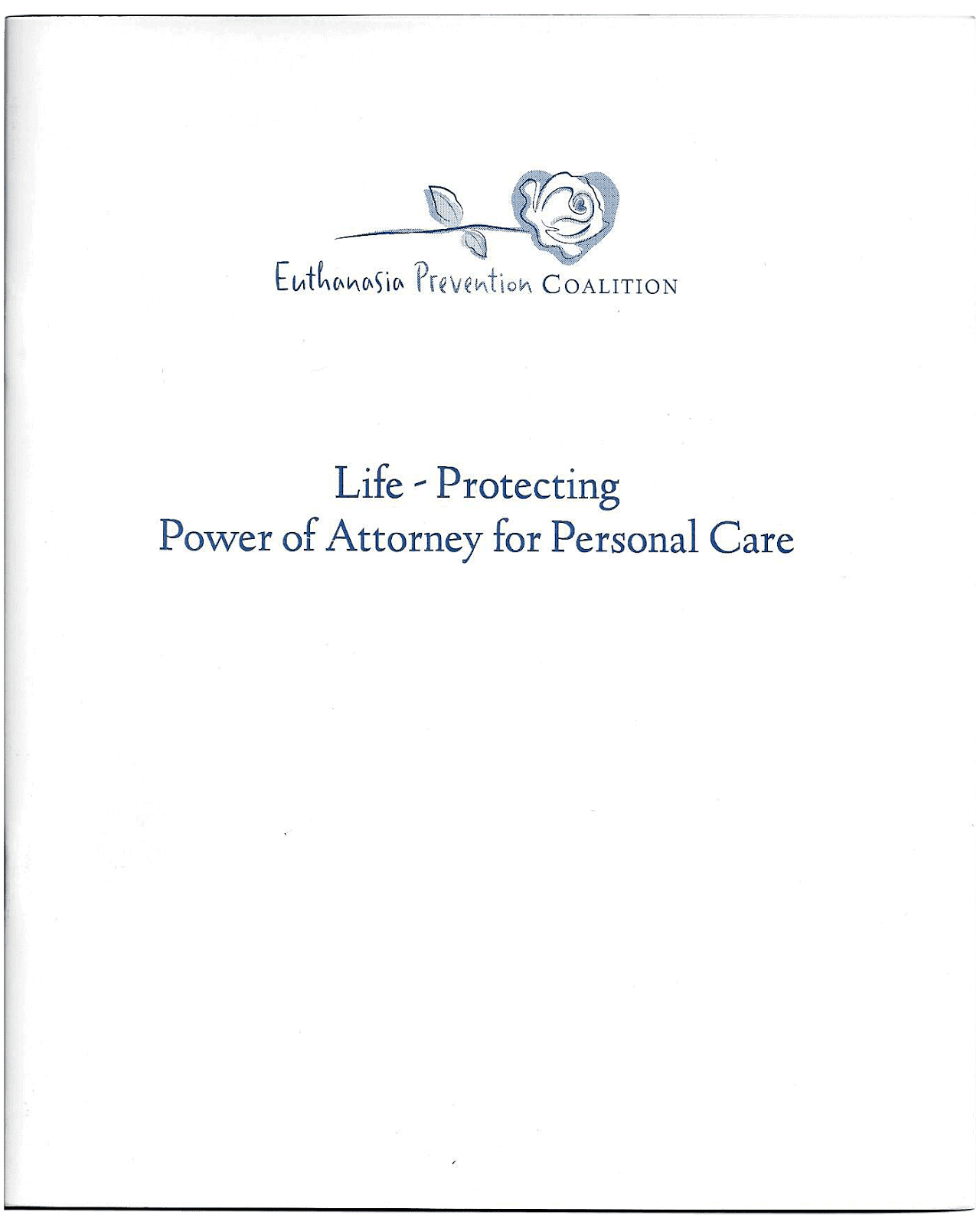 It is very important to have a document, such as the Life-Protecting Power of Attorney for Personal Care (Link to order) that can be purchased from the Euthanasia Prevention Coalition and to appoint a medical decision maker who understands your wishes and shares your values.